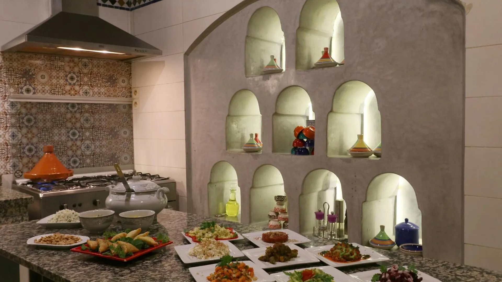Im hoteleigenen Restaurant können Gäste die marokkanische Küche genießen. In der Nähe gibt es viele Lokale, darunter das Restaurant Terrasse de la fontaine, das in einer 5 Gehminuten Entfernung vom Bed & Breakfast ist.